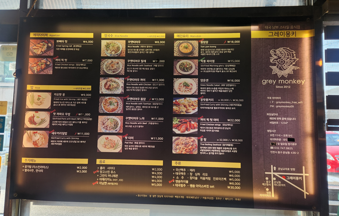 오래전 회사 동료들과 함께 식사를 하러 자주 방문했었는데, 영종도를 잠시 떠난동안 잊고 있었던 맛집이었습니다. 오랜만에 태국음식을 반가운 그레이몽키에서 먹게되어 좋았고, 분위기가 이국적이라 음식뿐 아니라 분위기까지 함께 맛볼 수 있었던 점심이었습니다.