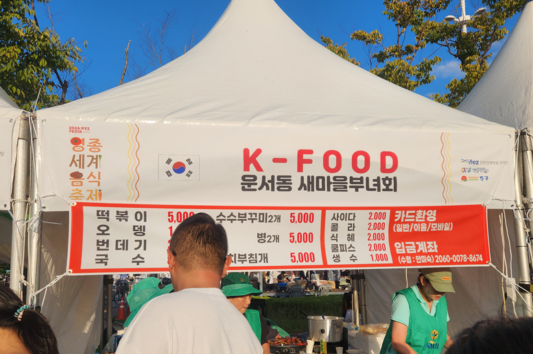 요새 두바이 초콜릿이 유명하다고 하더니, 롯데백화점, 용산아이파크몰 팝업스토어에서 조기완판된 카페콥히도 나와있었습니다. 세계음식축제임에도 불구하고, 한국음식들이 생각보다 곳곳에 많이 보였는데요. K-FOOD라고 해서 운서동 새마을부녀회에서도 참가하여 떡볶이, 오뎅, 번데기 등을 준비해주셨습니다.
